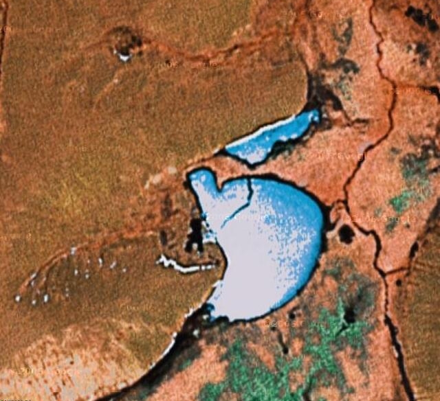 See this map (Heart iced lake) on Google Earth (kml file) Heart iced lake (Look Like)