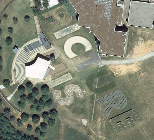 This is the park at the North Carolina museum of art where each letter of this land art is created with different landscape texture.