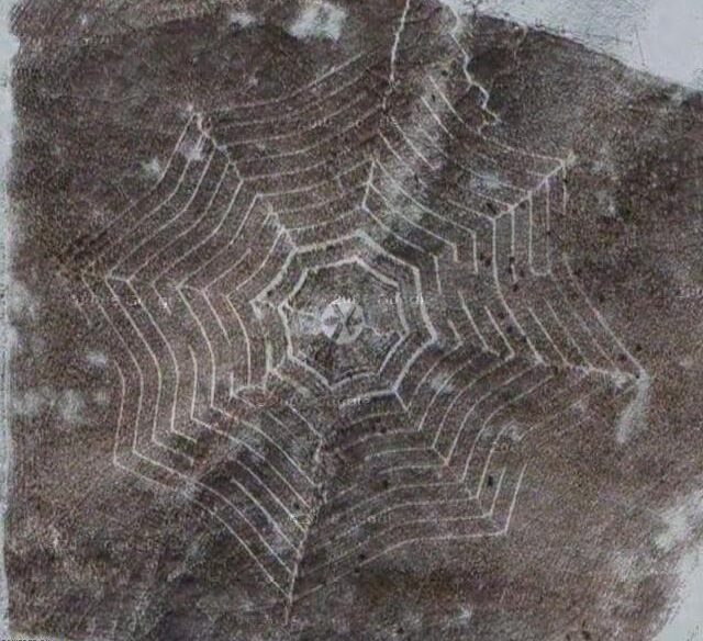 Under the snow, a 250 m large spiderweb drawn in the snow.